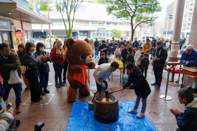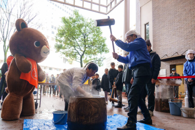 おみちょではご来場者による新春餅つきが賑々しくおこなわれました。みんな楽しそうで良い仕事始めでした!
