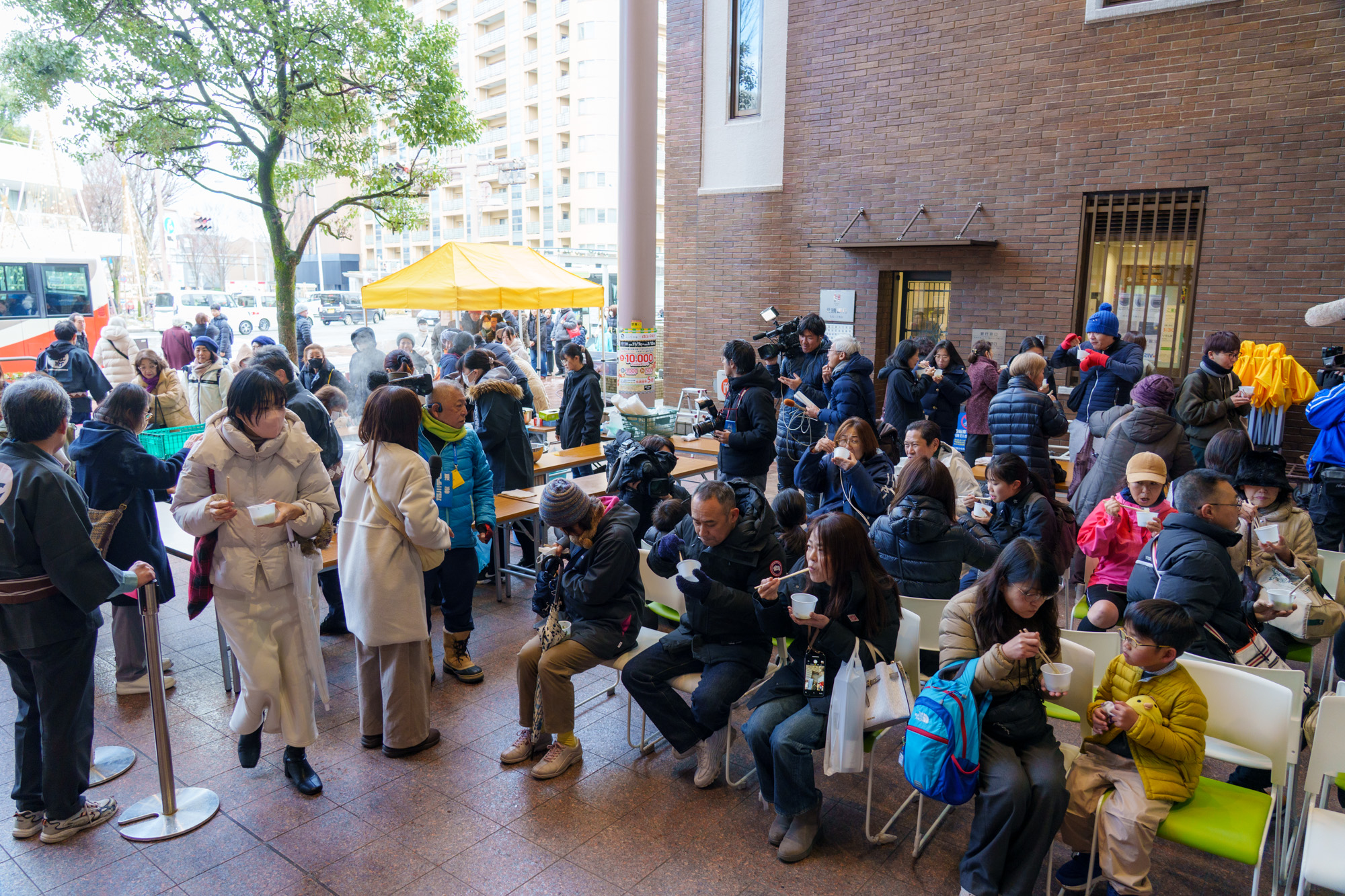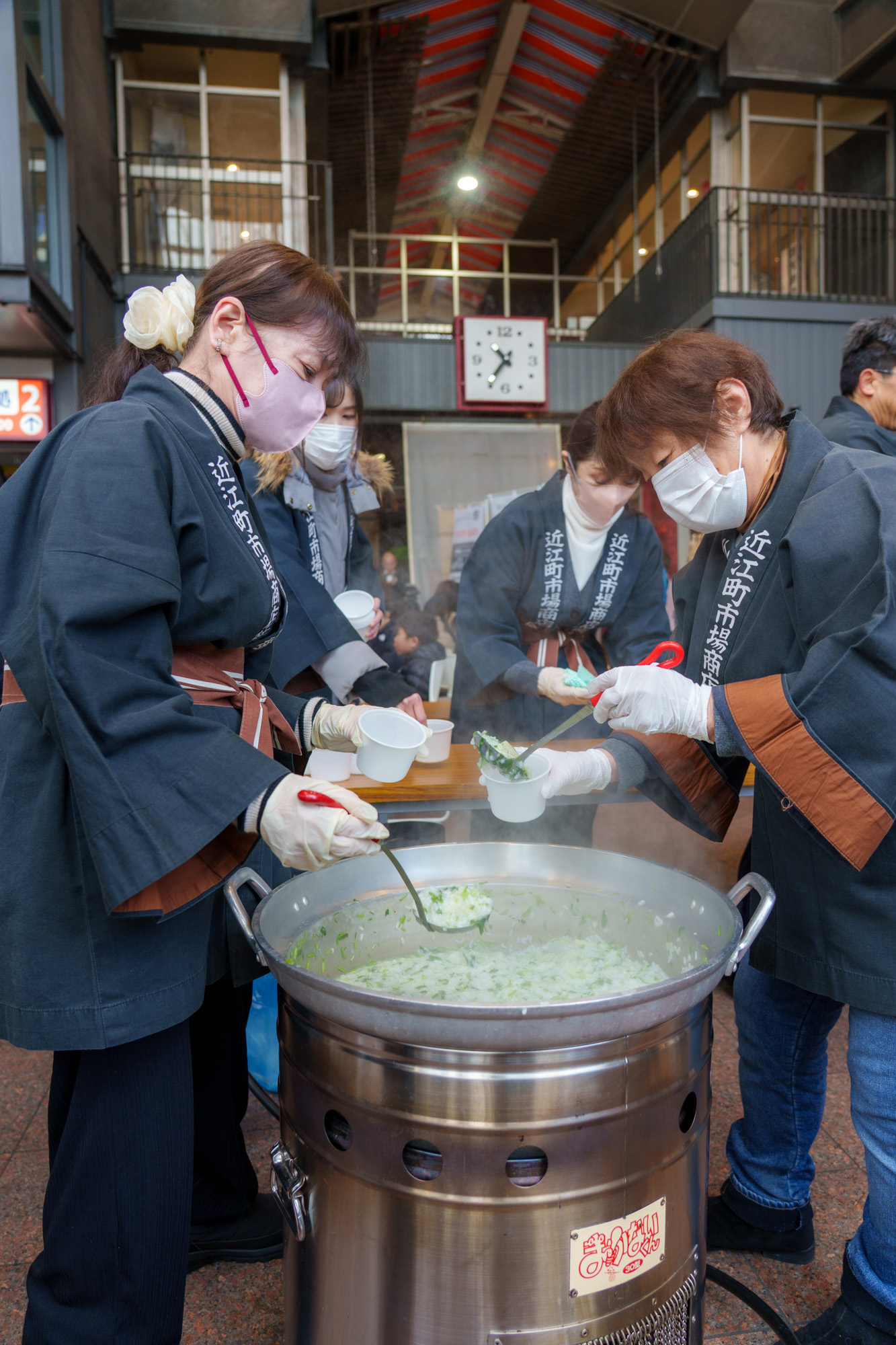 5日の新春餅つきに続いて七草粥の振る舞い。前日夜にはおみちょの八百屋集団…言わば七草のプロフェッショナルが集結して準備した七草粥(加賀野菜のセリをはじめ、地元産の野菜のほか、能登を応援するためコメは「能登ひかり」が使われ、ミネラル豊富な「能登の天然塩」だけで味付けされました)を約200人分、まさに大盤振る舞いでみなさんの無病息災を願いましたっ!
