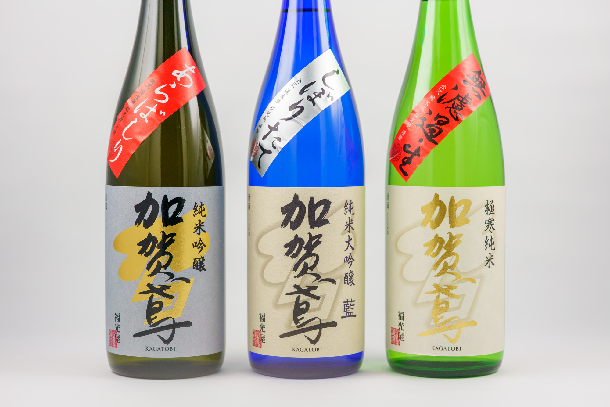 左から純米吟醸あらばしり、純米大吟醸藍しぼりたて、極寒純米無濾過生。個人的には純米吟醸あらばしりが好みかな。