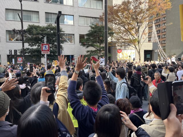 ウロチョロ中にソフトバンクホークスの祝賀パレードに出くわしました。見にくいけど、画像二枚目にケンスケと三枚目にギータですw